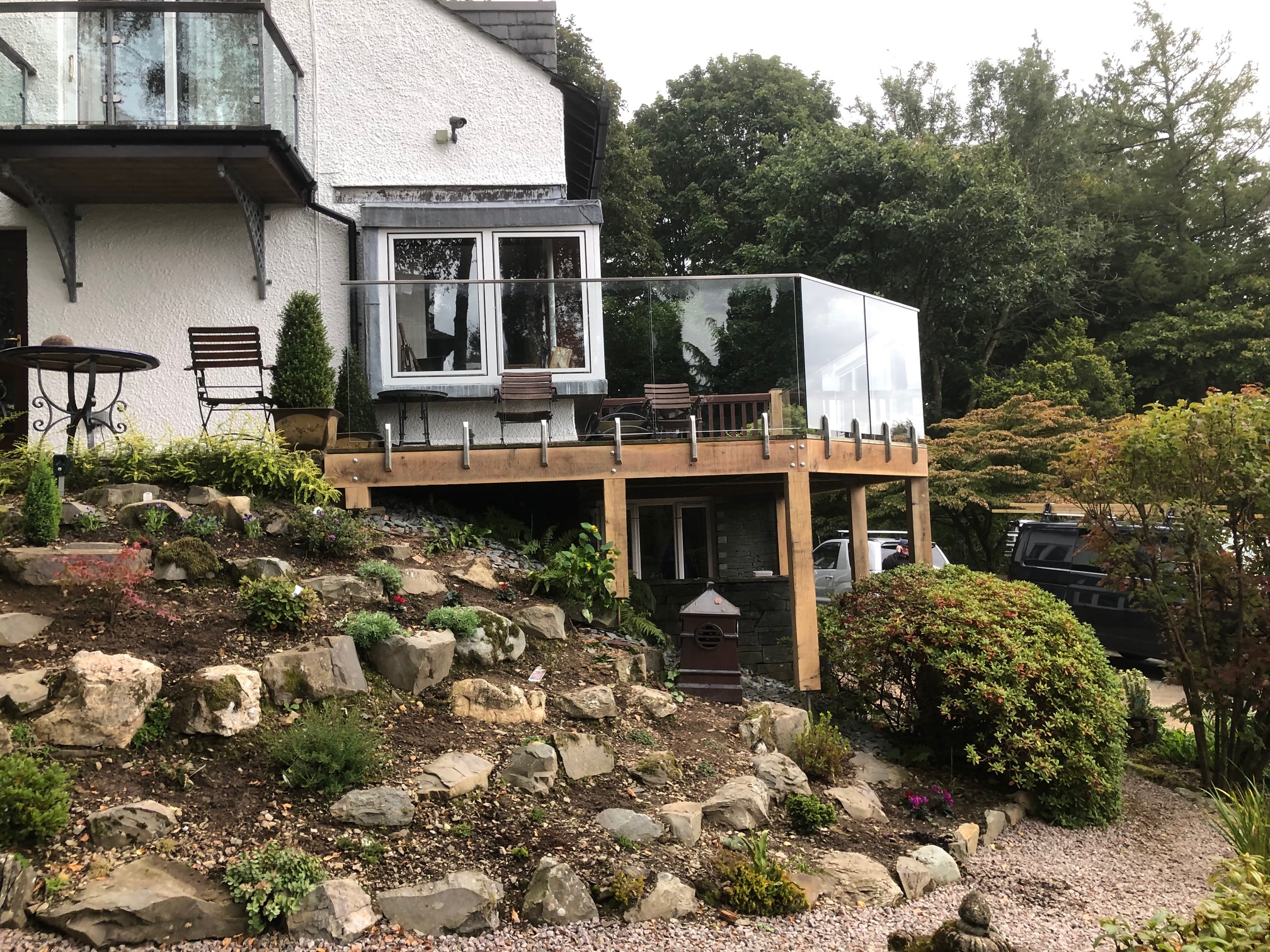 Really super spot for a glass balcony, which opens up the terrific view. Glass balconies are getting really popular and are a great option in Cumbria, giving an uninterrupted outlook across the landscape.