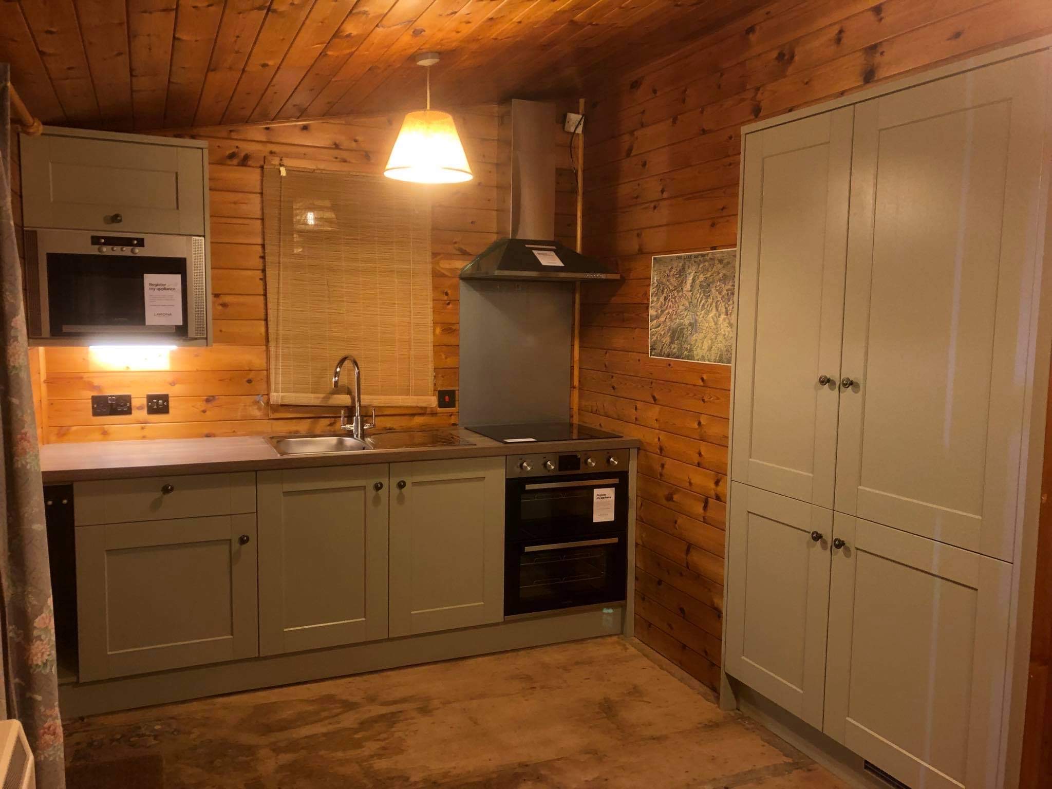 A great Howdens kitchen fit here for a holiday lodge. The colour sits very well with the wooden panelling of the lodge, and with the great view from the lodge itself. Kitchens for holiday lodges need careful planning as you’re often working with a limited space, so you want something that provides all the facilities you want – and enough worktop – without feeling cramped.